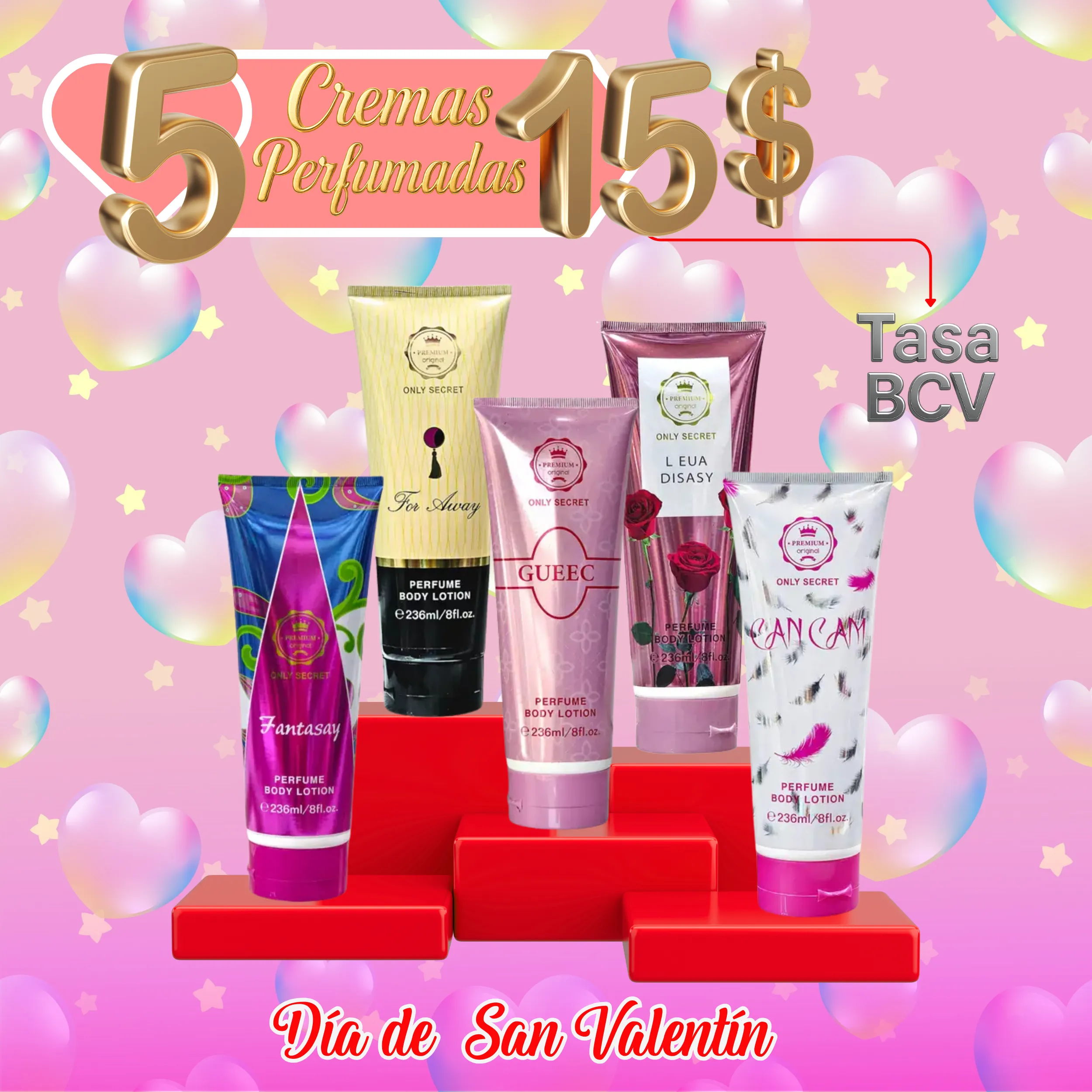 | OFERTAS DE SAN VALENTÍN | COMBOS V.V LOVE 75 ML, CREMAS PERFUMADAS ONLY SECRET 250 ML, PERFUMES EN ACEITE 50 ML, PERFUMES ONLY YOU 100 ML, SPLASH ÁRABES MERYAM FLOWERS |
